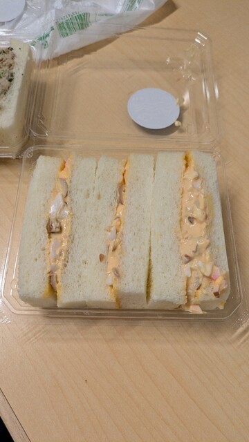 よく利用する海鮮丼屋さん。サンドウィッチは、本鮪を使ったツナマヨ・玉子ツナなどあります。