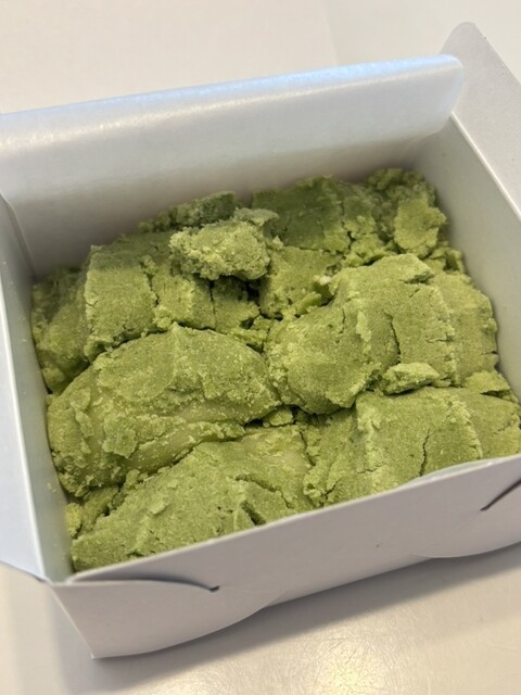白餡と抹茶を丁寧に混ぜ合わすことで不思議なほどサラッとした食感に仕上がっており、口の中ですっと溶けていく新食感の抹茶餅は、誰もが虜になってしまう味わい(๑˃̵ᴗ˂̵)