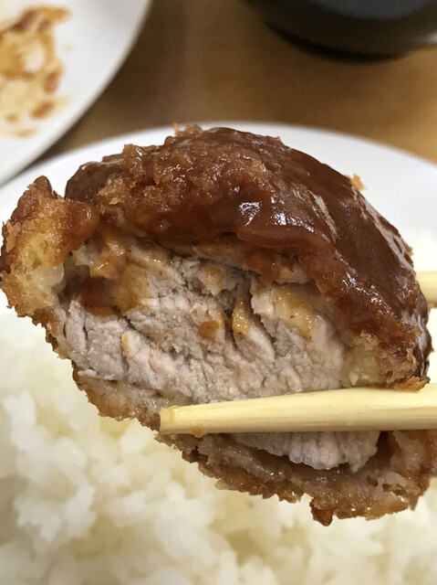 食べてみるとカツの厚みと大きさはもちろん申し分なしで、おまけにいつも通りめっちゃ柔らかい。