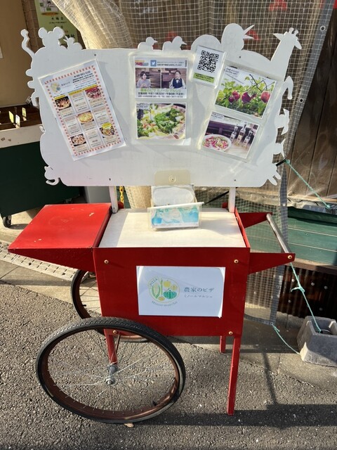 店前。この日は収穫野菜の販売はありませんでしたが、sns告知もされてるようです。FMラジオではミノールマルシェのラジオCMもあるとのこと。