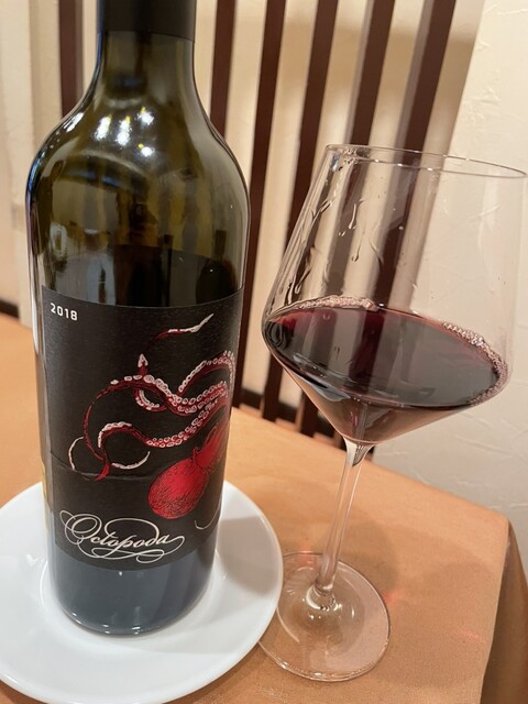 ワインはタコのエチケットが印象的な「オクトポーダ カベルネ・ソーヴィニヨン」カリフォルニアではなくワシントン。