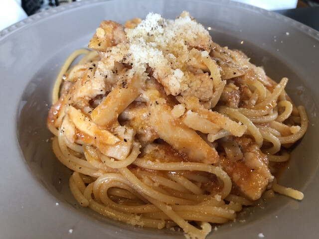 今日はランチで来店しました。イワシのパスタ、これ旨すぎるんですよ。肉厚のイワシ、麺はアルデンテ、パセリの歯応え、最高、熱々、ハッキリ言って一滴のスープも残したくない。カボチャの冷製スープも甘くて良い。サラダ、このビジュアル、ピザ追加したいです。