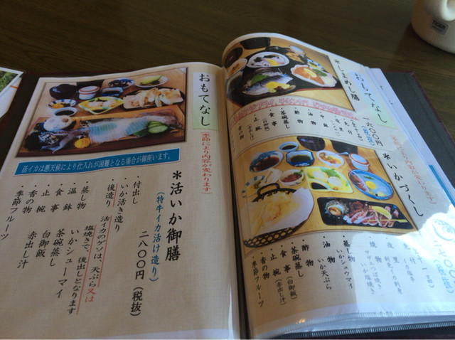 今日は、主人は生ウニとイカ、いくらの三色丼、私はイカ刺し定食。