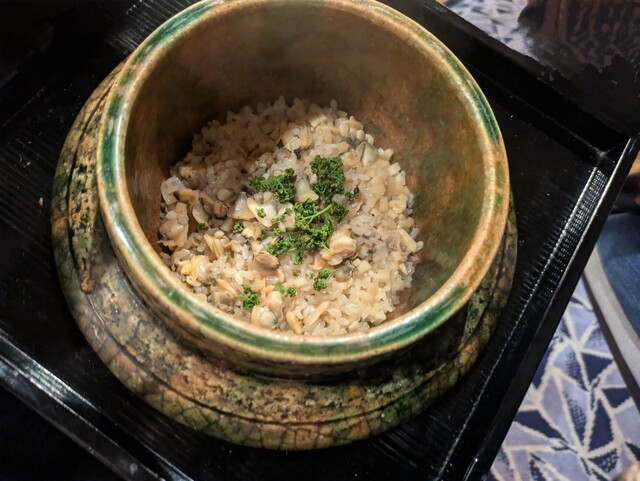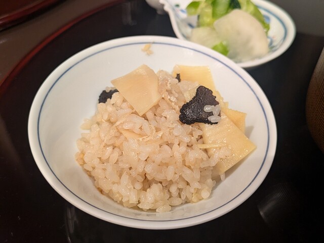 (食 事)・トリュフ香る筍御飯 蛤吸 横浜産野菜の浅漬