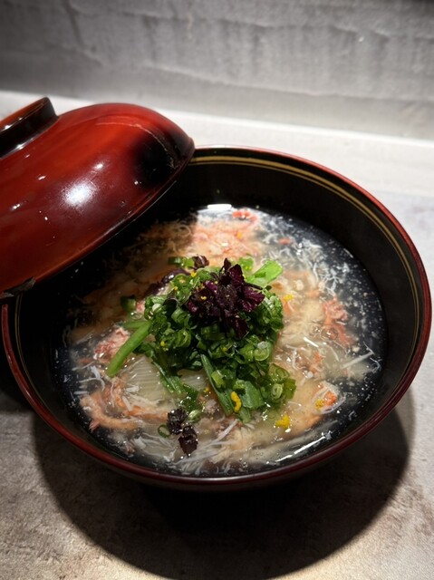 鯛の屑落とし、白ネギ、春菊、めじそ
