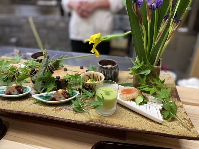 八寸はちまき、平貝梅ソース、蛸の柔らか煮、