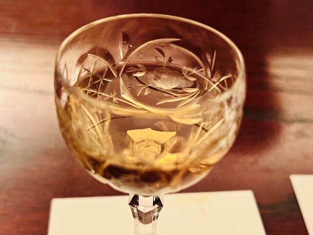 次は南アフリカ産のジャックフルーツとホワイト・ラムを使ったカクテルとのこと。大きなオールド・ファッションド・グラスに氷を入れて、並々と注いでくれます。このグラスが立派で重かった!