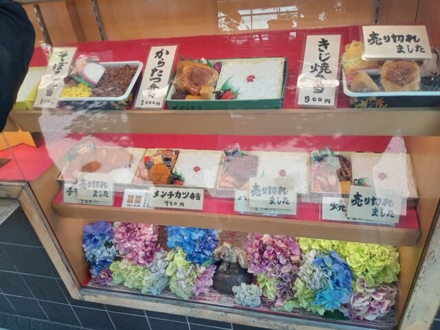 ショーケースの一部。幕の内弁当。