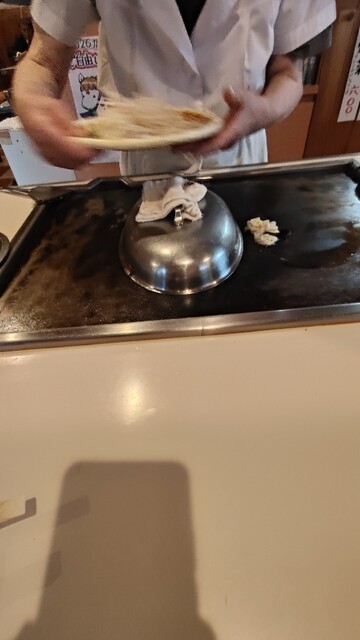 こちらのお店は鉄板の調理を全てお店の方がやってくれる。
