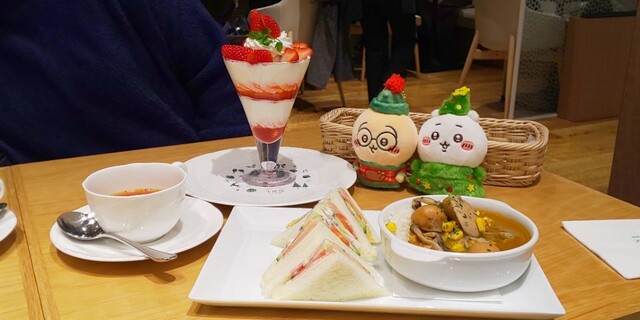 選べるコンビメニューは、カレー・サンドイッチから各4種類メニューを選ぶスタイル。デザート付きであることと、パフェも頼むので甘いものはチョイスしなかった。