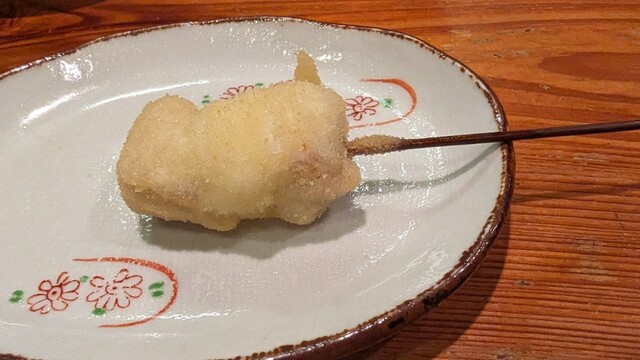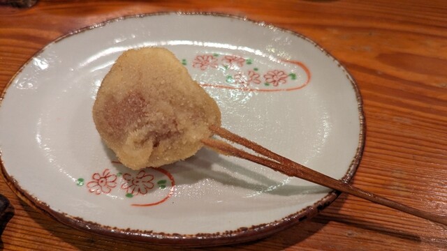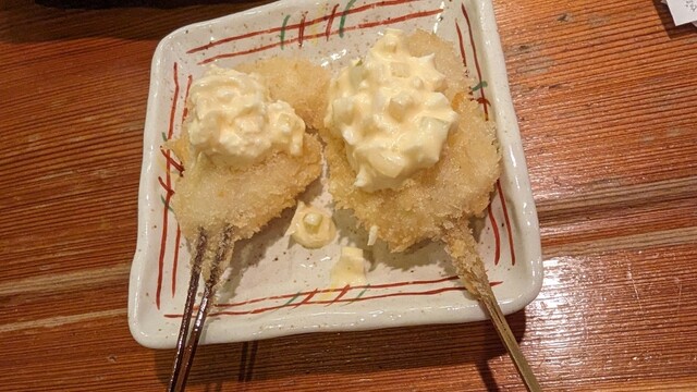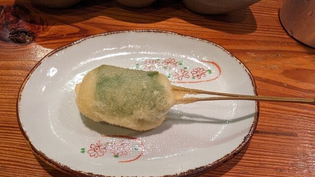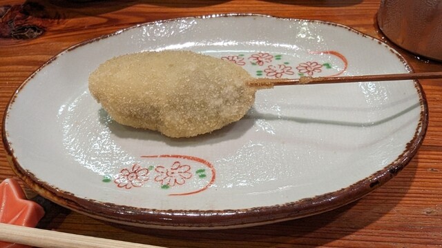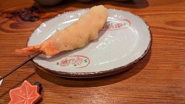 見た目は天ぷらの様でしたが食べてみるとしっかりと串揚げ。しかもエビがプリプリで衣とのマッチングも最高♪