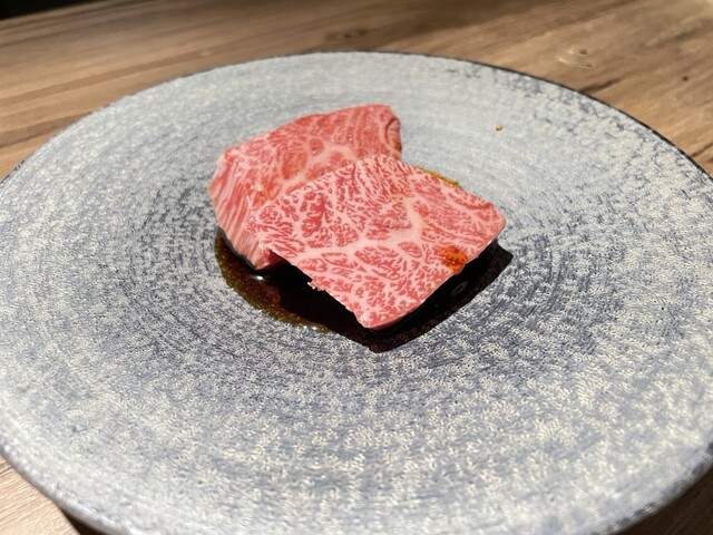 群馬県和牛のザブトン部位をお刺身で根室のバフンウニと一緒にいただきました!お肉の中に雲丹が入っていて最高な組み合わせでした!