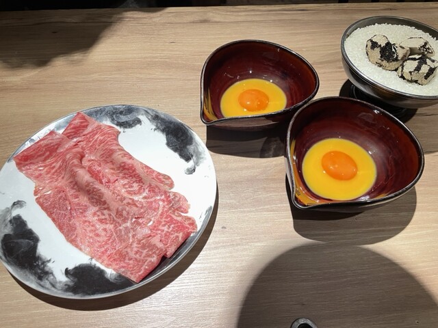 シンプルなすき焼きを贅沢にたくさんの黄身とたくさんの削られたトリュフと一緒にいただきました!白米が止まらず、最高な卵かけにして最後は楽しくいただけました!