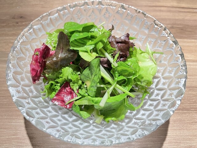コース最初ではなく、メイン前の箸休めにすごくピッタリなタイミングでのサラダでした!