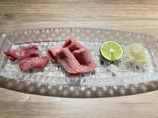 タンさき、タンもとをそれぞれお刺身としていただきました!醤油でも塩でもどちらでいただいても美味しかったです!