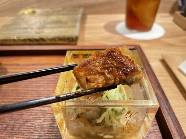 鰻の串を最後にいただきました!剣に鰻が巻き付いているような見た目です!鰻のジューシーさもあり美味しかったです!