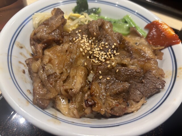 相方は厚切りカルビ定食。ご飯代わり無料です。普通のセットもカルビから厚切りカルビに変更。+ 400円でできるので、やっぱり厚切りカルビの方がおいしいかなぁ笑