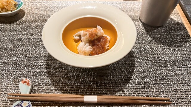 お鮨の前の、鱧の梅肉の梅肉一つから、こ...