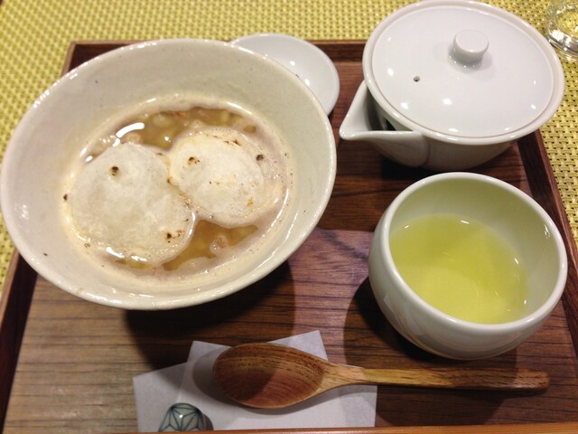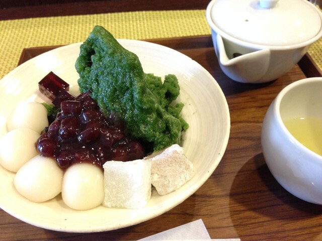 5月くらいからの期間限定メニュー 濃茶ソルベのあんみつ仕立て が絶品。