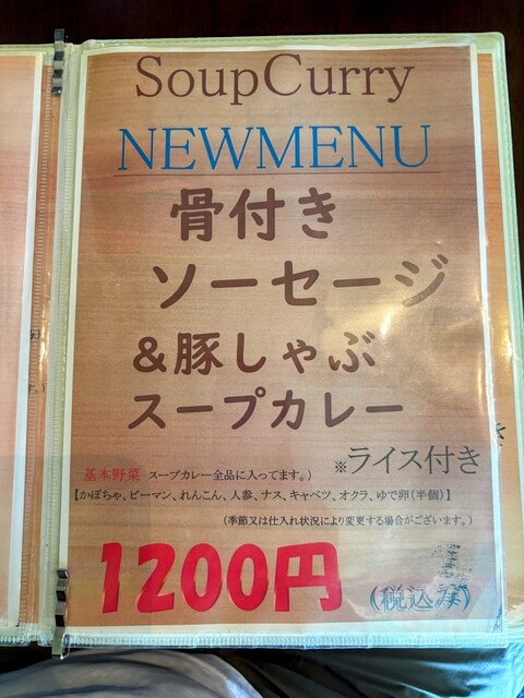 骨付レッグチキンのスープカレー¥980スープ大盛¥50クーポンフィッシュフライ(-¥100)