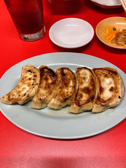 まずは餃子とレバニラ炒め、赤星、ウーロン茶で始めます。餃子は横濱屋より一回り小さく、餡も少ないです。美味しいんだけど満足感がありません。