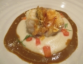 ・山口県萩産甘鯛の松笠焼 お芋のソース スープ・ド・ポワソンのソース グルエルチーズ
