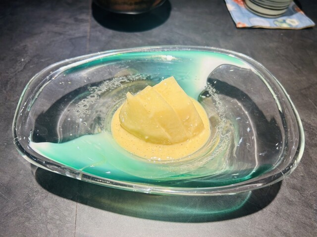 鱧の浮袋から取ったゼラチンで卵を固めてます