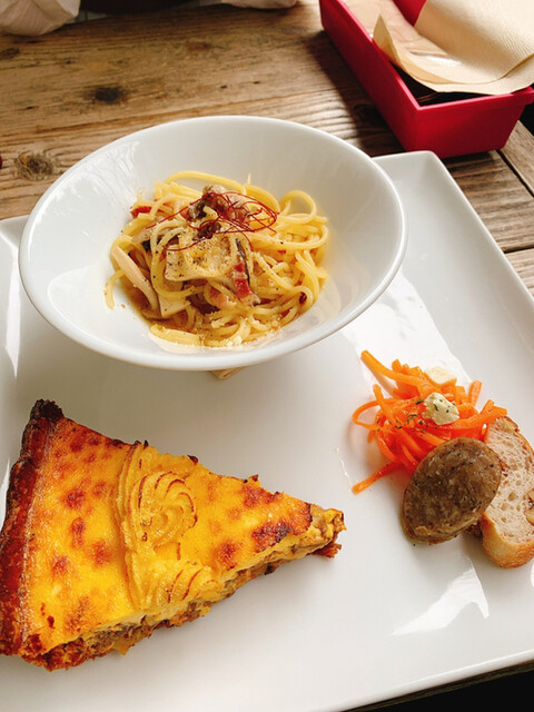 私はハーフパスタとキッシュのプレート、友人はサラダプレートにそれぞれシュークリームをセットに゚+.゚(´▽`人)゚+.゚
