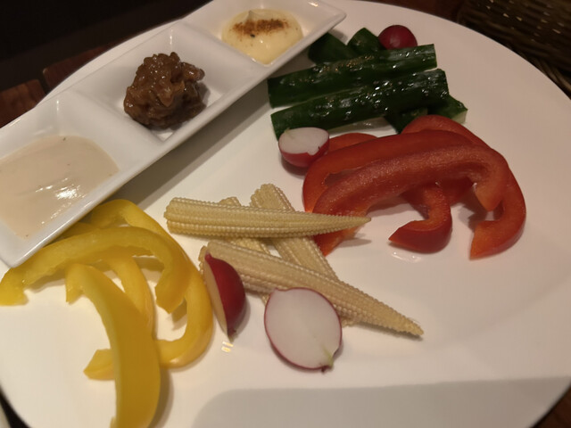3種のディップソース付きの野菜スティックもさっぱりオススメ(╹◡╹)♡