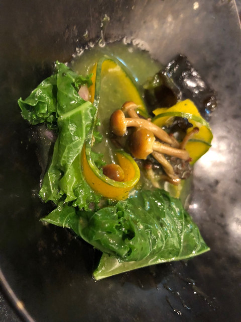 粥ベジ鍋とは、野菜のスープにお粥が溶け込んでいるものなんです(≧∇≦)この粥ベジが5色あったよー!★白は、塩麹と白大根のスープ★緑は、パクチーとほうれん草のスープ★黄は、黄とうがらしと南瓜のスープ★赤は、ビーツとドライトマトのスープ★茶は、ポルチーニとモリーユのスープ