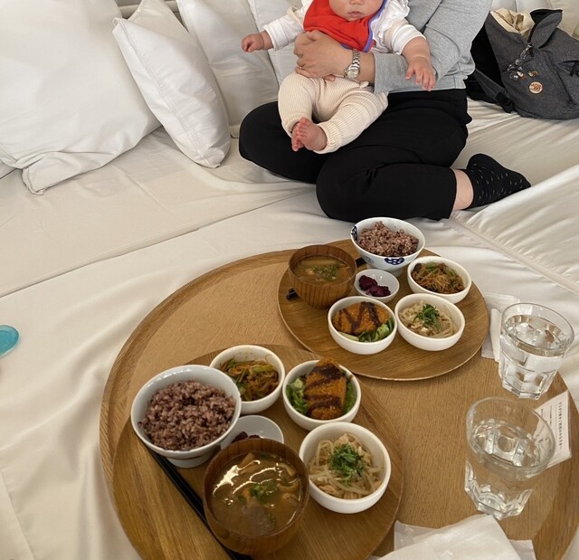 生後7ヶ月の赤ちゃんと一緒だったので、小上がりの席を利用しました。赤ちゃんが寝転がっても余裕のある席幅で、隣との距離感も広く、とても居心地がいい空間でした。ランチ後ももっと居たくて、追加でドリンクを注文したぐらいです。