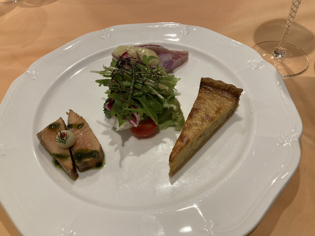 従姉妹に勧められて、当日予約。野菜中心のフレンチ。根セロリのポタージュはホッとする甘み。オードブルはサーモンのマリネ、ほうれん草とタマネギのキッシュ、ハマチのお刺身とサラダ。キッシュはしっとりで人気との事。和牛赤ワインの煮込と七穀米と舞茸のリゾットは、美味しいとしか言いようがない。リゾット推し。デザートは栗のパウンドケーキとアイス。かなりのボリュームだがもたれないのが嬉しい