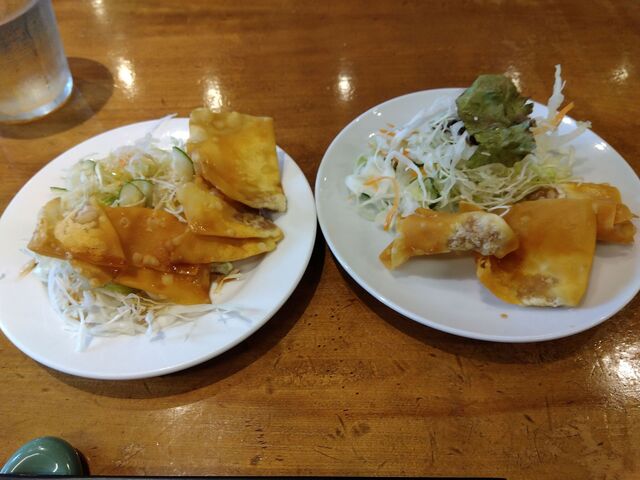 セルフ式のサラダ?も揚げワンタンもあって十分(なくなることもあります)