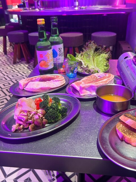アヒージョサムギョプサルもアヒージョとサムギョプサルがとても合ってて、