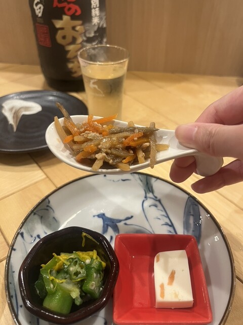 お酒に合う3種で特にきんぴらはそぼろの旨みがしっかり効いてました。