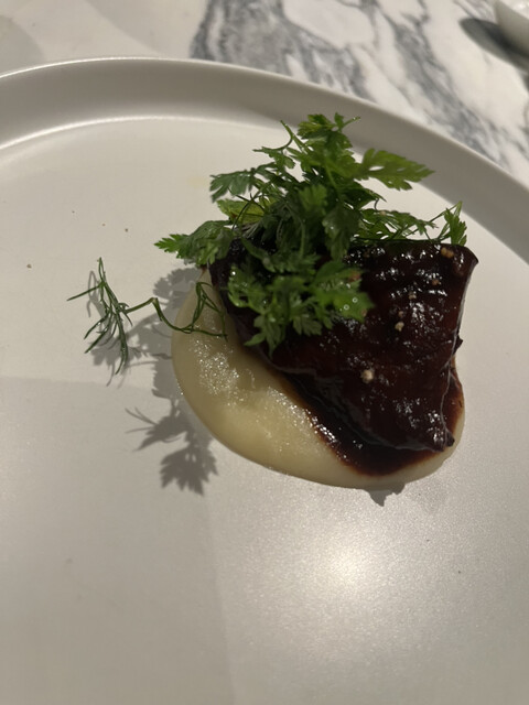 ペポーゾはイタリア語でペッパーのことだそう。牛すね肉をたっぷりの赤ワインと黒胡椒(香味野菜、フォンドヴォー、ハーブも)で煮込んだそうで、お肉はホロホロ。繊維が感じられ、とても柔らかかった。香りがよかったです♡