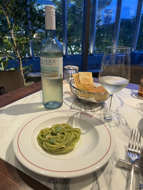 ペアリングの白ワインは、ポルトガル産のもの。発泡していて、爽やかでさっぱりとしていて美味しかったです✨