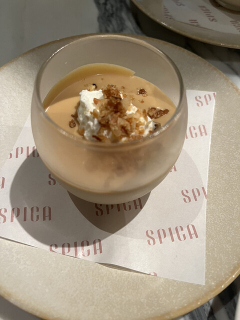 とってもクリーミーなキャラメルソースにパンナコッタの滑らかさとミルキーな組み合わせが美味しい。キャラメルナッツの軽さとカリカリした食感と香ばしさもたまりませんでした✨