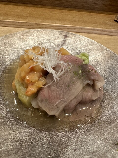 ・賀茂茄子と車エビの田楽 鹿児島牛