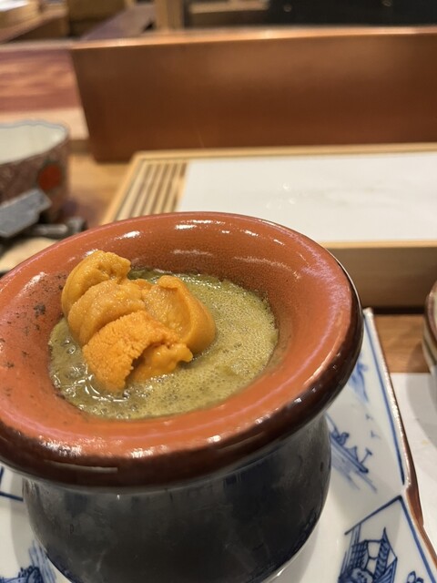 残ったソースには、小さなお結びの天ぷらとバフンウニを追加し、濃厚な雑炊が最高の締めになりました。
