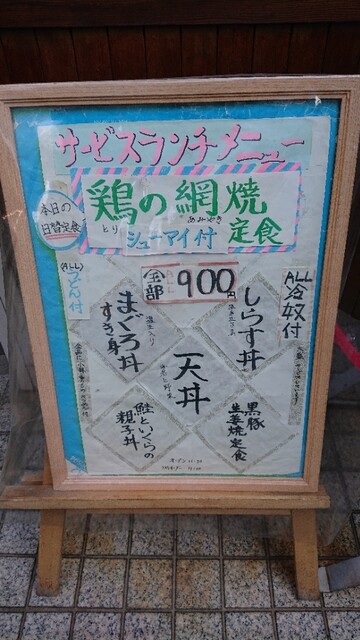 店頭のランチメニューの看板を見ると定番定食5種類に日替り1種類があるようです。