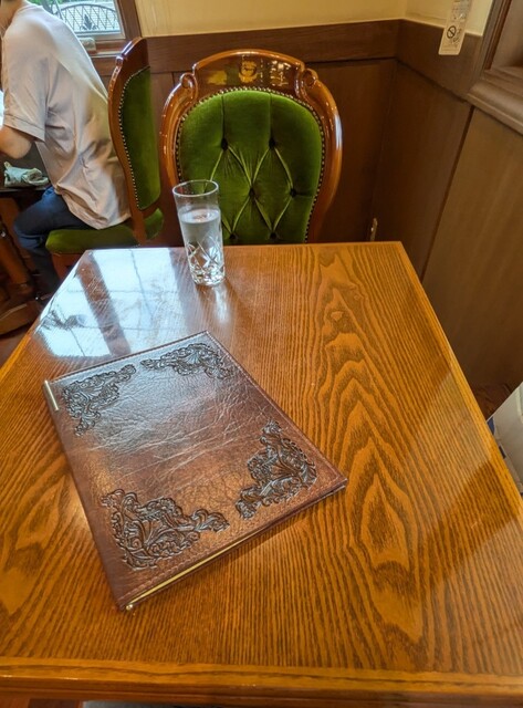 明るい店内は茶色の調度品と深みのある緑のチェアーで統一されています。