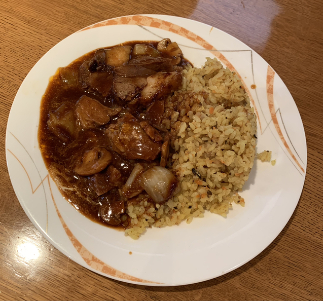 ピラフ牛肉の角切り煮込み添え