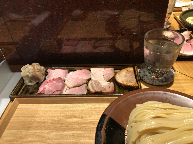 "中華蕎麦 とみ田"で"つけめん(中)"1,500円に"特選全部乗せトッピング(焼売+味玉バージョン)"1,500円を頂きました。