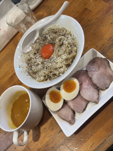 極汁美麺 umami さんで、『地鶏白湯魚介醤油』唇が潤う程に濃厚な地鶏と絶妙な魚介と優しい醤油の少しトロミあるめっちゃうまスープ。歯触りパツぎみの細麺がスルスルと喉越し良くて美味い。分厚い山形豚でTKG巻いたり、そのまま味わったり、どれも美味しくてたまらん!めっちゃうま!