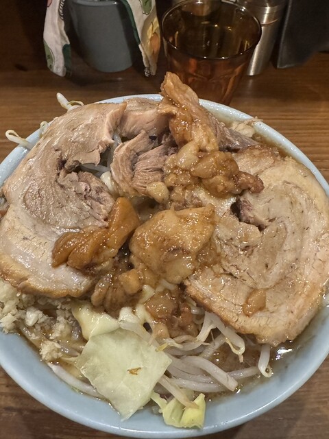 いかれたNoodle Fishtonsさんで、TXショウガまぜそば。たっぷりの旨いスープに唐辛子の赤味とTXのサイコロ肉、生姜ミンチ、玉葱、九条葱、バラ海苔などが綺麗に盛られて、混ぜると舌先や喉にワンツーパンチの旨辛まぜそばに。美味い平打ち柔麺を啜り、ライスダイブで超絶具沢山飯になってたまらん旨さ。めっちゃうま!