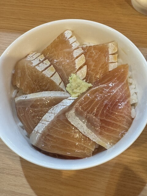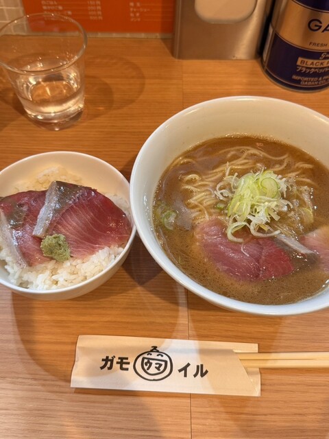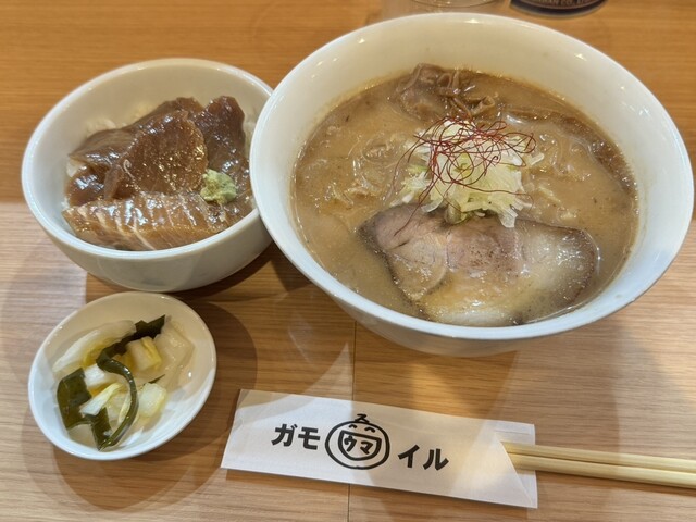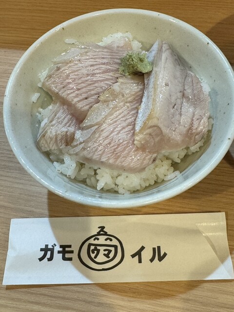 ガモウスマイルさんで、鰤塩らーめんとヅケ飯。羅臼鰤出汁と優しい塩ダレのめっちゃうまスープ。柔らか鰤の身とチャーシューも噛むほどに美味しい。麺はツルシコの喉越し良い中細麺。葱と一緒に啜るの旨っ!サクッとした穂先メンマも旨っ!絶妙な美味さのタレがかかった羅臼鰤のヅケの歯応えがブリンブリンで半端ない、ええ鰤使ってます。めっちゃうま!