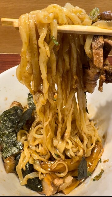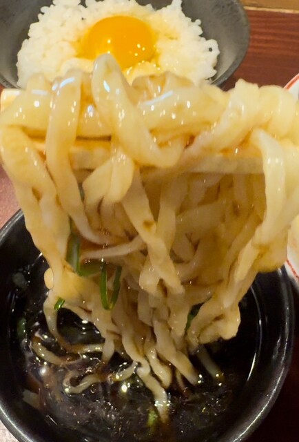 超多加水純手打ち麺 仁しむら さんで「賄い」手打ちの細麺と秋刀魚節の油と醤油の良い香りする、あまじょっぱいタレと卵黄。混ぜて気づく器のそこにチャーシューがたっぷり。やっぱこの手打ち麺最幸やねん。思わずTKG追加で残さず堪能。賄い定食たまらん。めっちゃうま。
