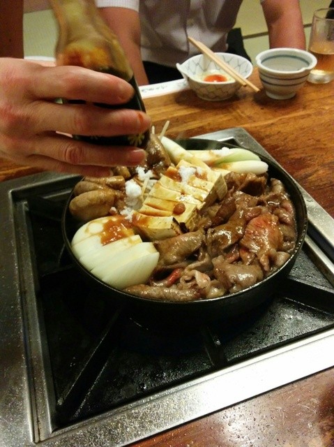 お座敷へ上がると、コンロが内蔵された小さなテーブルが並んでいました。
