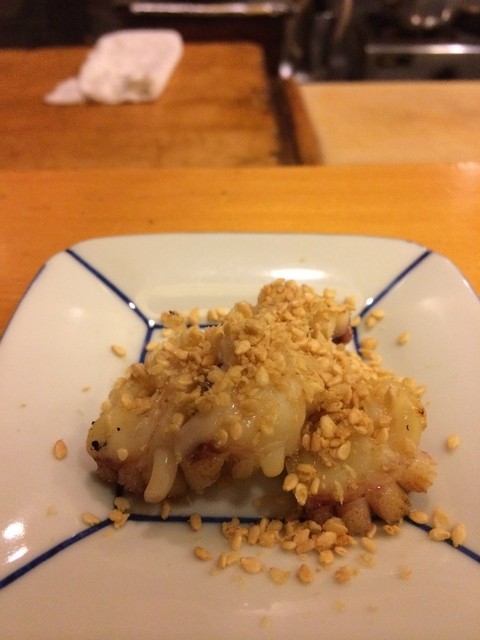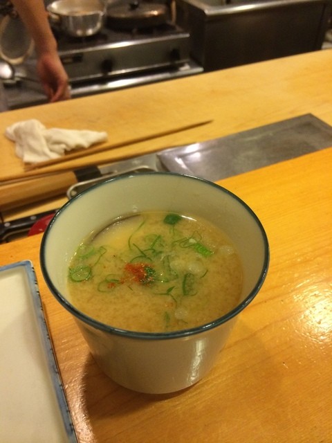 ほぼ満席状態で、カウンターの隅のほうに座りました。